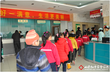 慰问结束后,麦腰小学的师生们一起受邀来到山东红会福娃娃医院。方青卓和山东红会福娃娃医院领导带孩子们一起参观山东红会福娃娃医院,帮助他们了解医学知识、卫生常识,积极解答孩子们的提问。