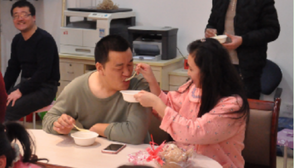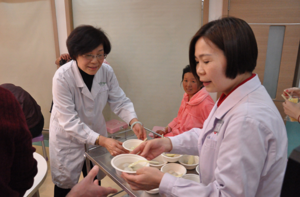随后医院特别为住院部患者煮了汤圆,希望因住院无法回家过节的他们能够在医院度过这次难忘又开心的元宵佳节。一份份代表团团圆圆的汤圆在锅中慢慢煮开,被送到患者的手中,美味可口的汤圆及节日的欢乐,让患者的脸色都洋溢着幸福的欢笑。