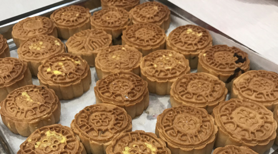 我们亲手制作的月饼出炉 阵阵香甜的味道弥漫在茶话会的氛围里