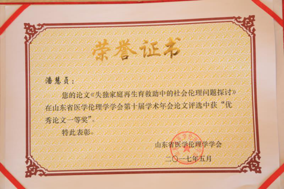 两篇论文分别从失独家庭再生育社会伦理问题、医学道德及生命医学伦理等角度,对目前的生殖医学领域做了深刻的探索研究,充分展现出了他们对于医学的孜孜不倦的追求,通过这些研究,能够更好的服务于医学事业,造福更多的人群。