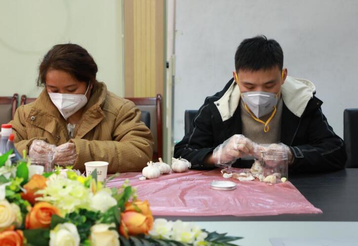 在腌制腊八蒜环节,患者们积极参与其中,在工作人员的带领下,开始亲手扒蒜,有的夫妻齐心一起忙碌;也有姐妹俩一起来院的患者,共同扒蒜制作;更有陪伴父母来院的10岁小男孩,他的心愿是“希望爸爸妈妈给自己生个妹妹,想要保护她”,梦想成为哥哥的他已经有了满满的保护欲。