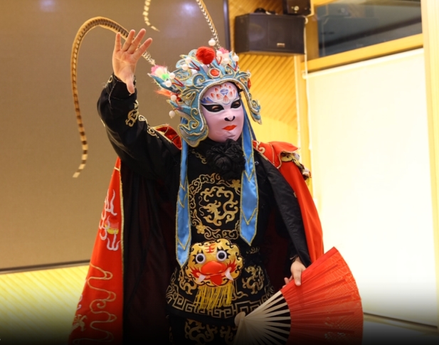 随后,一场精彩的川剧表演将活动推向高潮。专业的川剧演员呈现了变脸绝技,博得现场观众阵阵掌声。