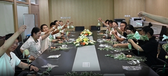 大家围坐在一起,互相学习、交流,手中的竹片在巧手下翻飞,逐渐编织成一个个精美的香笼。在制作过程中,大家不时分享着端午节的习俗和故事,欢声笑语中弥漫着浓厚的节日氛围。当香笼制作完成,再将准备好的艾草放入,点缀上铃铛和流苏,一个完整的艾草香笼便诞生了。这香笼不仅可以辟邪、驱虫,更能为家中增添一份独特的雅致。