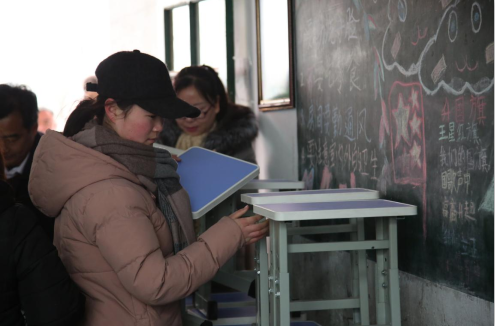 教职工怀着喜悦的心情搬运新桌椅
