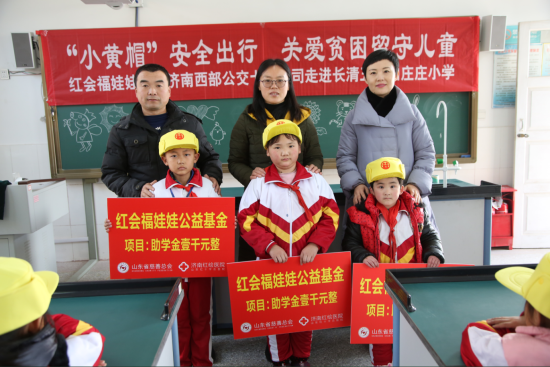 12月4日下午,济南红绘医院联合济南西部公交七分公司的工作人员前往长清五峰山庄庄小学,开展了一场“关爱贫困留守儿童”的暖冬公益助学活动。留守儿童是一个特殊群体,父母关爱的缺失致使他们长期生活在“孤独城堡”中,需要社会更多的关注。此次活动以捐赠小黄帽为契机,为学生们开展交通安全和消防安全常识教育,并向三位特困生提供每人壹仟元的“红会福娃娃”助学金,同时跟他们建立起长期的互动沟通关系,定期跟踪他们的学习情况和变化,让他们的心灵不再“留守”。